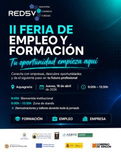 El próximo 16 de abril tendrá lugar en Ejea de los Caballeros la segunda feria de empleo, un proyecto impulsado por la Red5V en el que unen esfuerzos la Comarca de Cinco Villas, la Asociación de Empresarios de las Cinco Villas (AECV), la Asociación Ejea Comercio y la Asociación de Empresarios Turísticos (Civitur). Entre todos suman unos 500 asociados del territorio. A ellos se suma Adefo Cinco Villas, entidad a través de la que se han conseguido las ayudas que financian este proyecto.
